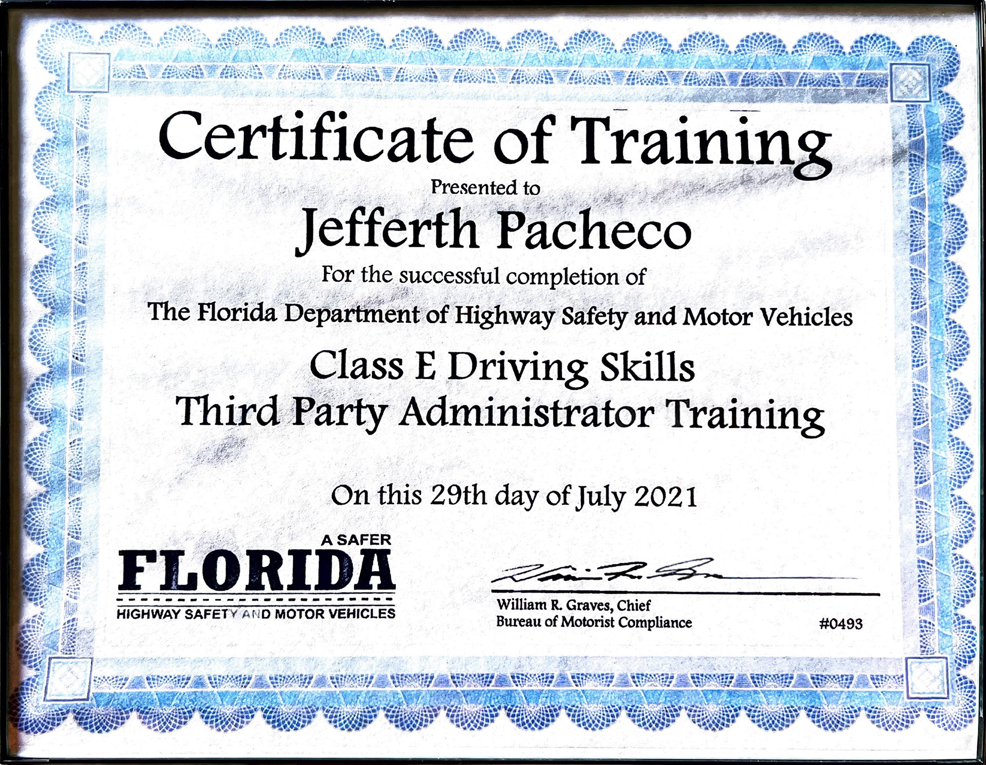 Hello everyone welcome to my private driving school, I’m in my late 30's now but after completing two years in the driving education field with another company, and having more than 17 years of driving experience myself. I felt it was time to pursue driving [instructing] on my own. Thus in the mids of 2022, I decided to start and establish my very own private driving school, which as you may know by now is my beloved Pacosta Driving School. While working for a different third-party company as an instructor, I was promoted after six months due to my high driving experience skill-set to instruct others on how to be, think and be safe drivers... To an examiner. Thus I was placed into the FLHSMV Class E Driving Skills Third Party Administrator Training to become an examiner. Having successfully passed the state program, I got Certified by the FLHSMV Dept. to administer the Driving Test for a Third Party Company.