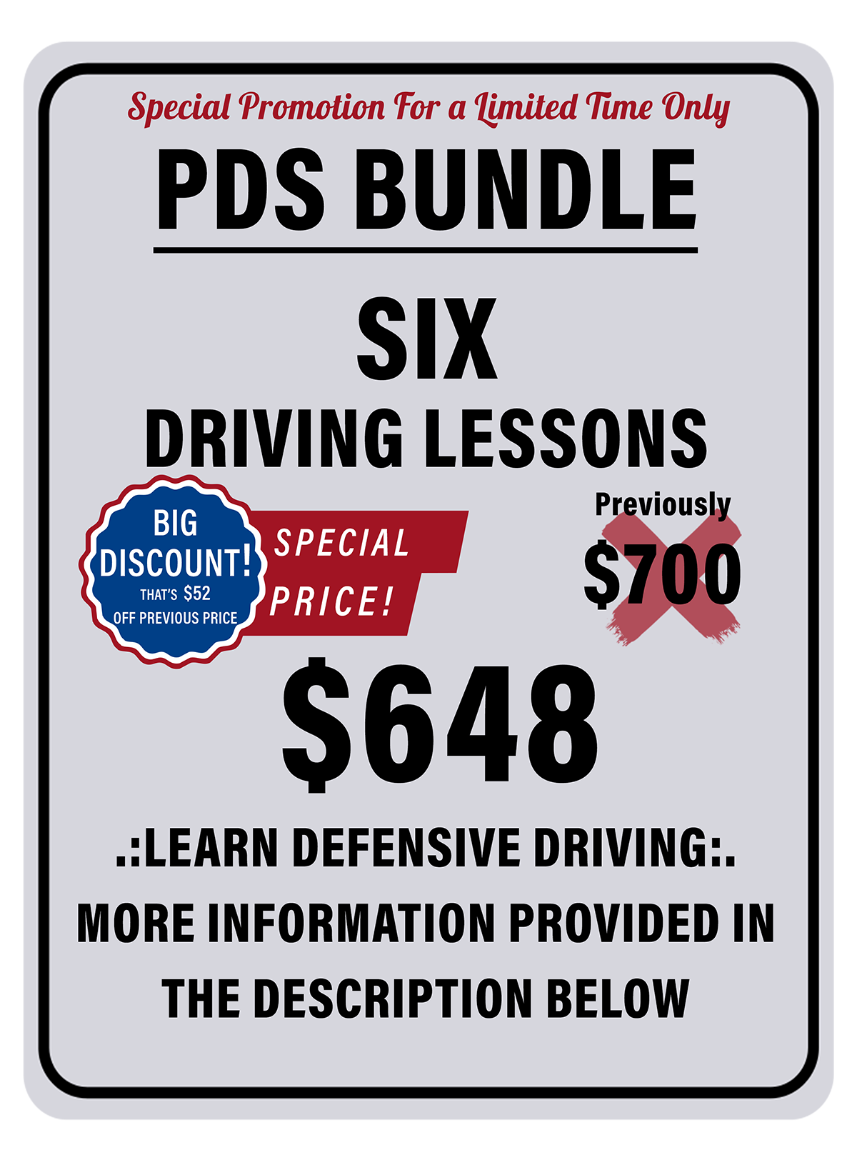 THIS PDS BUNDLE CONSISTS OF [6-HRS] OF SPECIALIZED BEHIND-THE-WHEEL ONE-ON-ONE DRIVING PROGRAM. WE RECOMMENDED TO THOSE WHO HAVE MORE DRIVING EXPERIENCE AND WOULD LIKE TO GET A PROFESSIONAL INSTRUCTOR TO BETTER THEIR DRIVING SKILLS AND LEARN MORE ABOUT HOW TO BE A DEFENSIVE DRIVER.